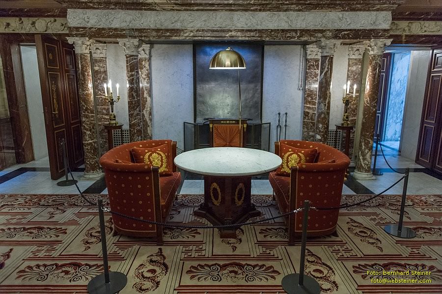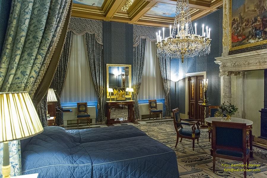 Doch das Mobiliar aus der Zeit des "Empire", bestehend aus etwa 2.000 Teilen, von hölzernem Mobiliar und Polstermöbeln bis hin zu Messing-Kronleuchtern und Originaltapisserien, ist heute immer noch im Palast ausgestellt.