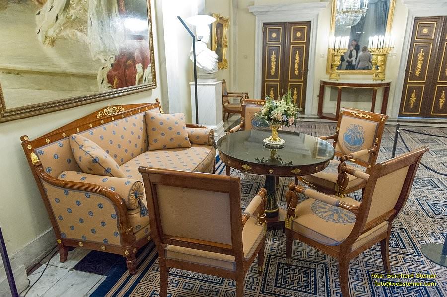 Der Palast beherbergt eine der weltweit umfassendsten Sammlungen von 2.000 verschiedenen Stücken von Empire-Stil Möbeln und dekorativer Kunst, darunter Holz-und Polstermöbel, Bronze-Kronleuchter und original Wandbehänge.
