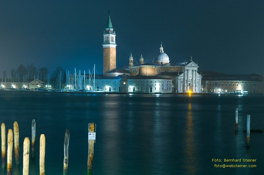 Der Blick auf San Giorgio Maggiore mit Gondeln im Vordergrund.