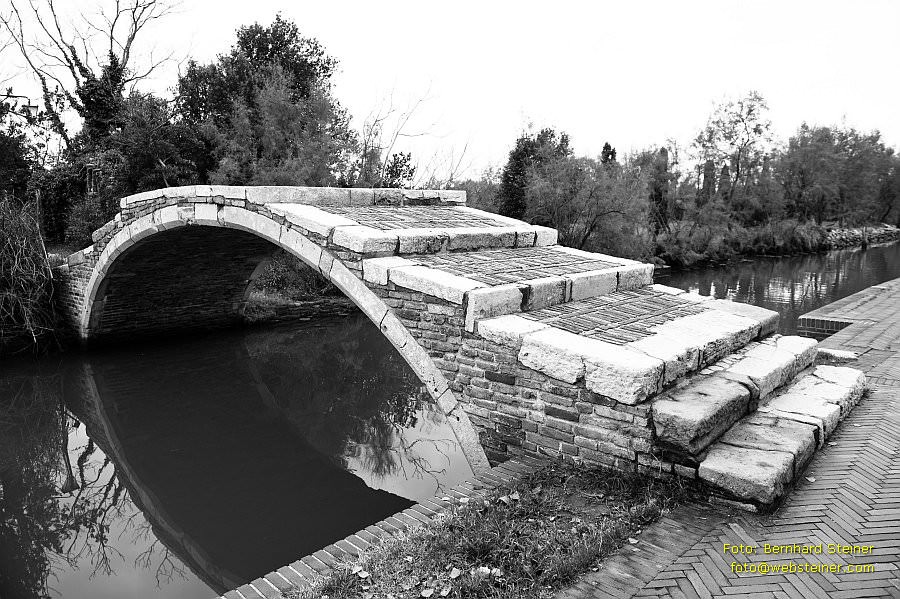 Brücke in Torcello, eine Insel in der laguna morta, dem nördlichen Teil der Lagune von Venedig, in dem die Gezeiten nicht mehr bemerkbar sind.