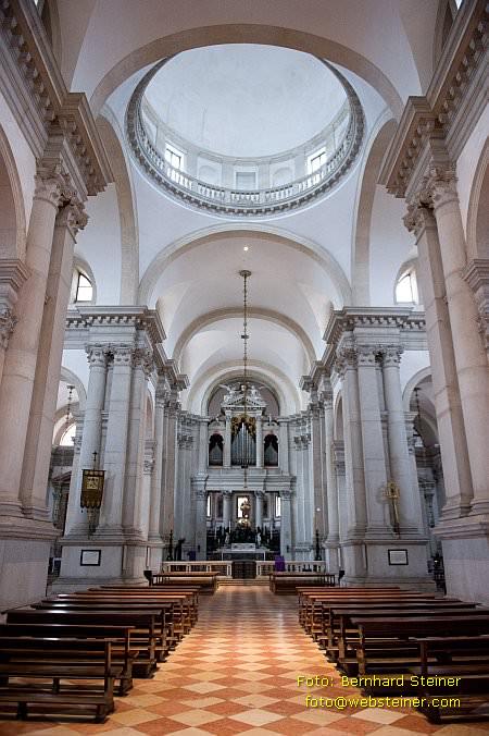 Innenraum der Kirche San Giorgio Maggiore auf der Insel San Giorgio Maggiore. Und der Blick von einem Campanile zum anderen (und für gute Panos) geht ungehindert, für EUR 6,- auch ganz in Ordnung. In der Kirche darf kostenfrei fotografiert werden.